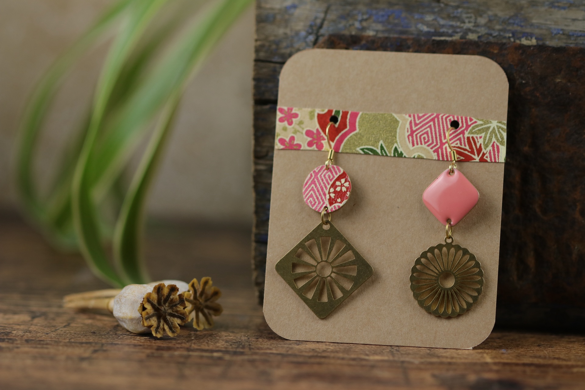 •Matériaux : Laiton, papier washi, crochets en acier inoxydable anti-allergène
