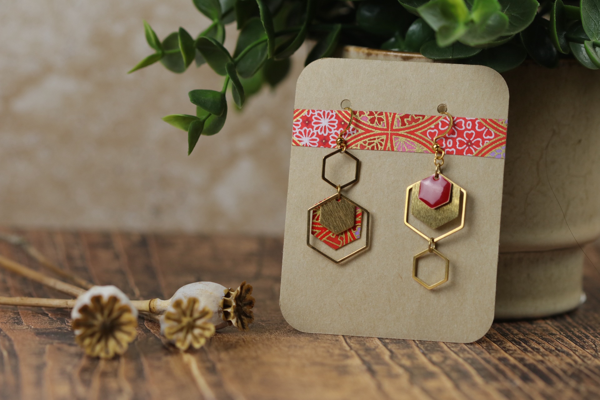 •Matériaux : Laiton, papier washi, crochets en acier inoxydable anti-allergène